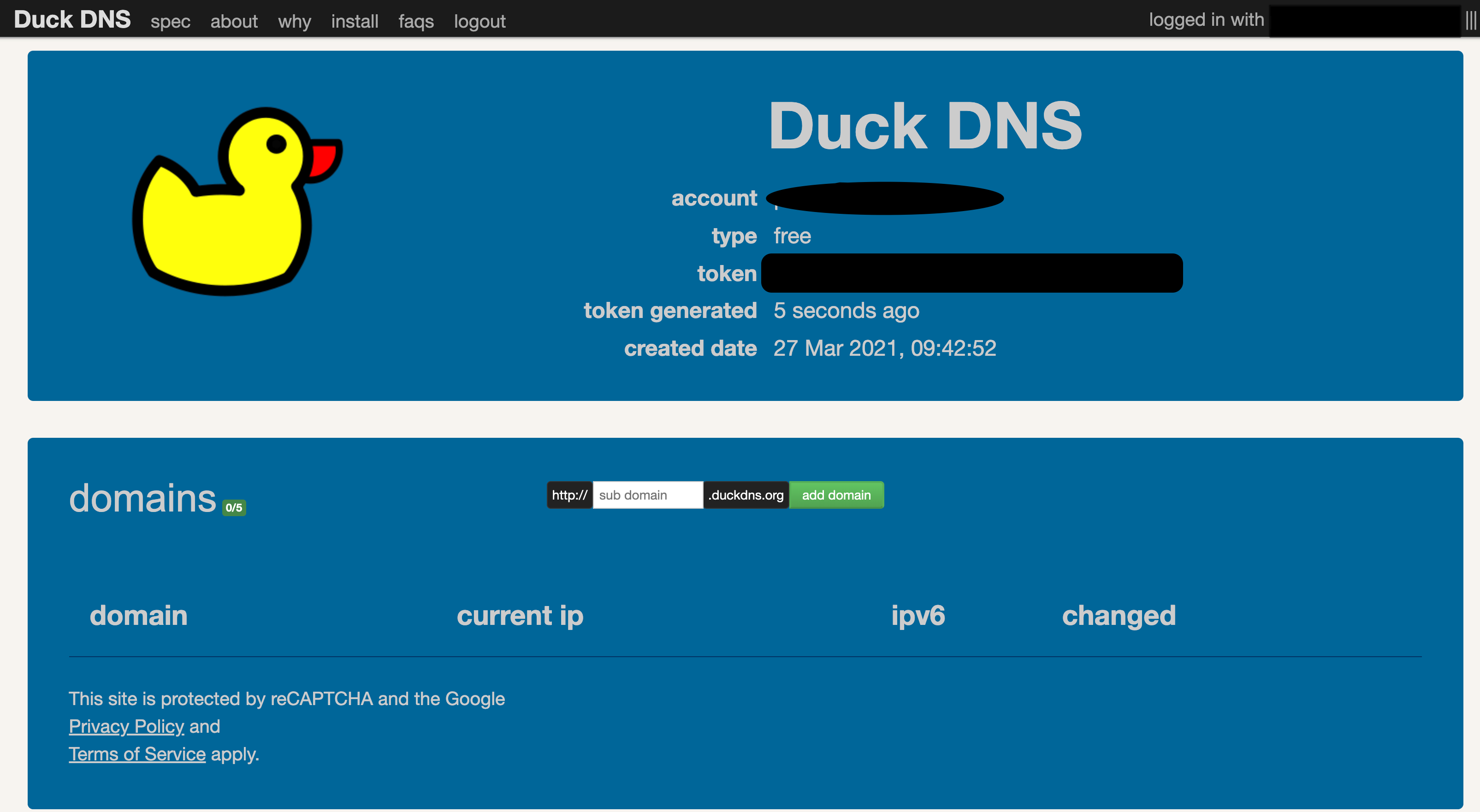 먼저 DuckDNS에서 회원가입을 하고 도메인을 추가합니다.