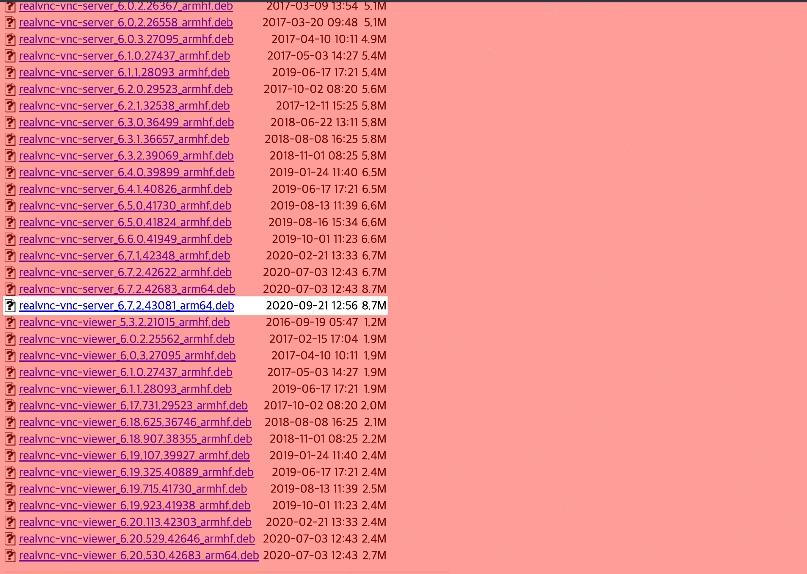 먼저, https://archive.raspberrypi.org/debian/pool/main/r/realvnc-vnc/에서 아래 사진에서 흰 부분의 파일을 다운로드한다.