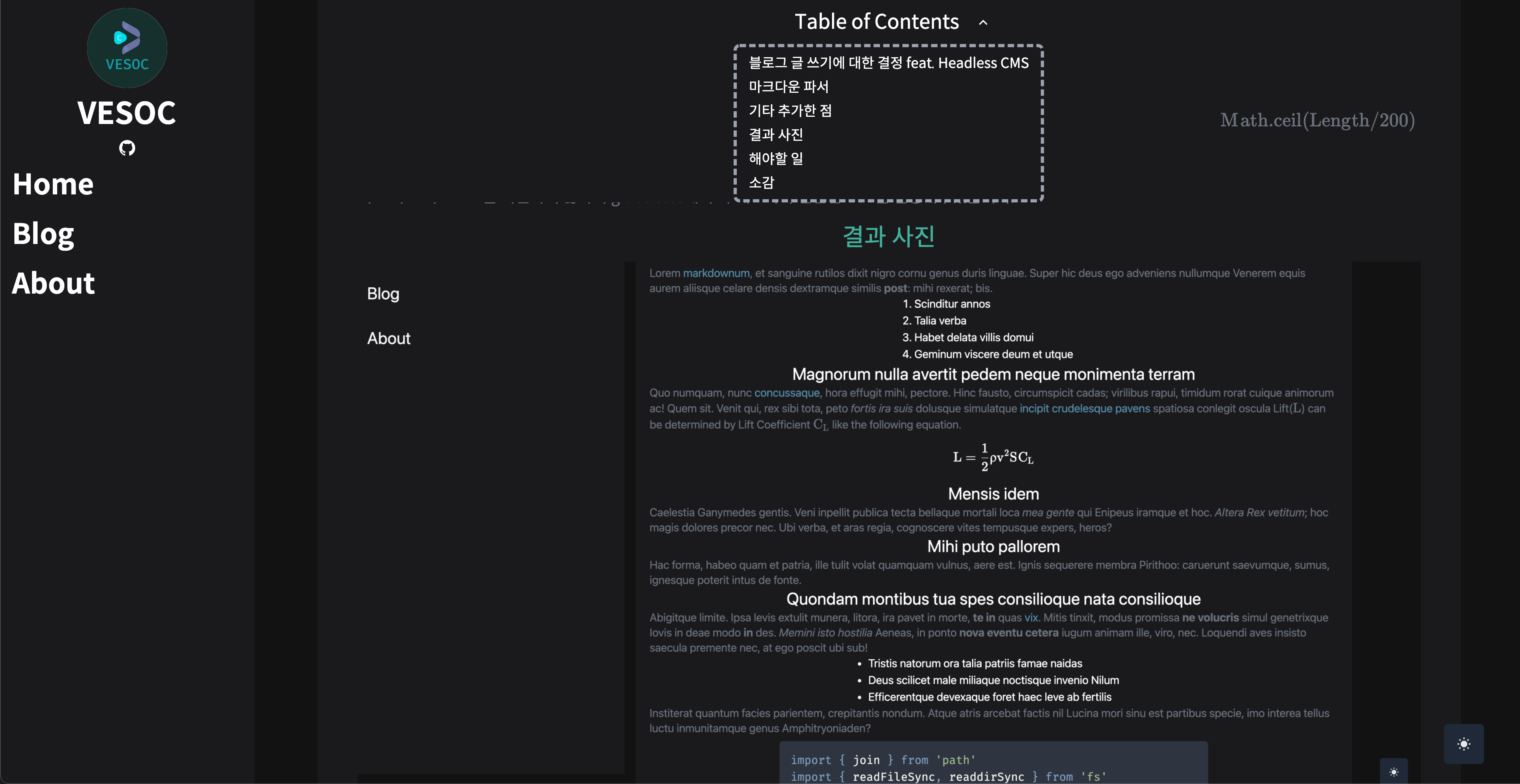 일단 태블릿 사이즈 부터는 목차가 뜨지 않도록 했습니다.