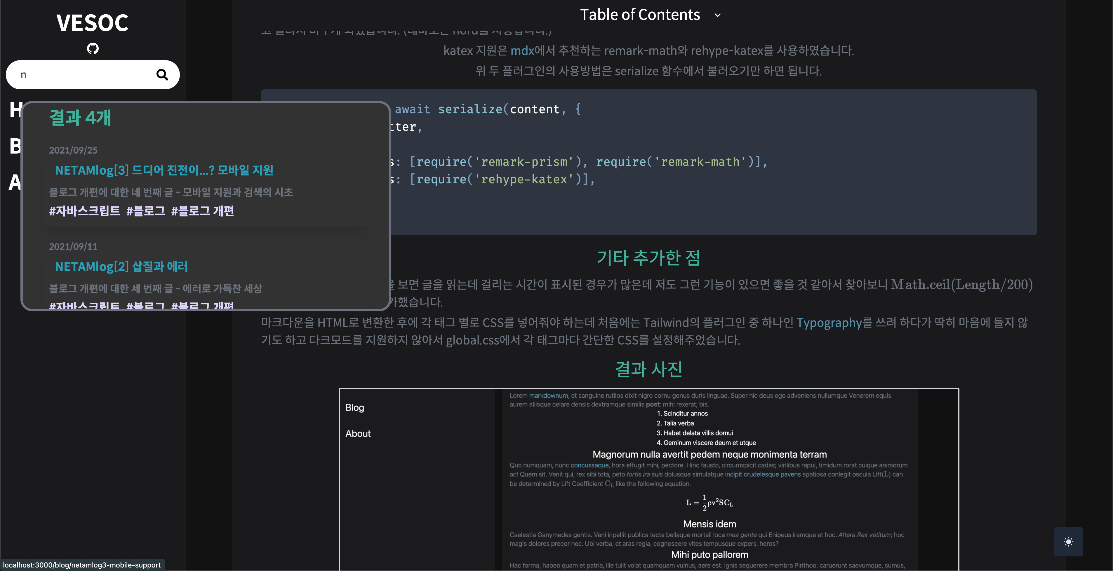 그리고 본문에서 검색하는 것도 일단은 빠르게 계산할 수 있을 것 같아서 결국 마크다운 파일 자체를 파싱하는 것과 다름없다.(그러고 보니 나중에 vercel로 deploy하고 나면 이렇게 하기 힘들거 같은데 따로 방법을 찾아봐야겠다.)