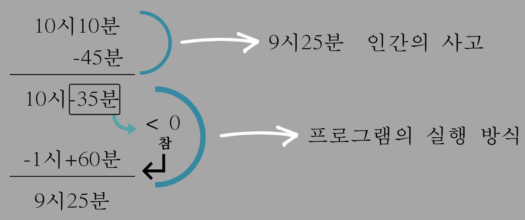 이때, 만약 시각이 0이라면 1을 뺀 값은 23이 되어야 한다는 것을 염두에 두어야 합니다.