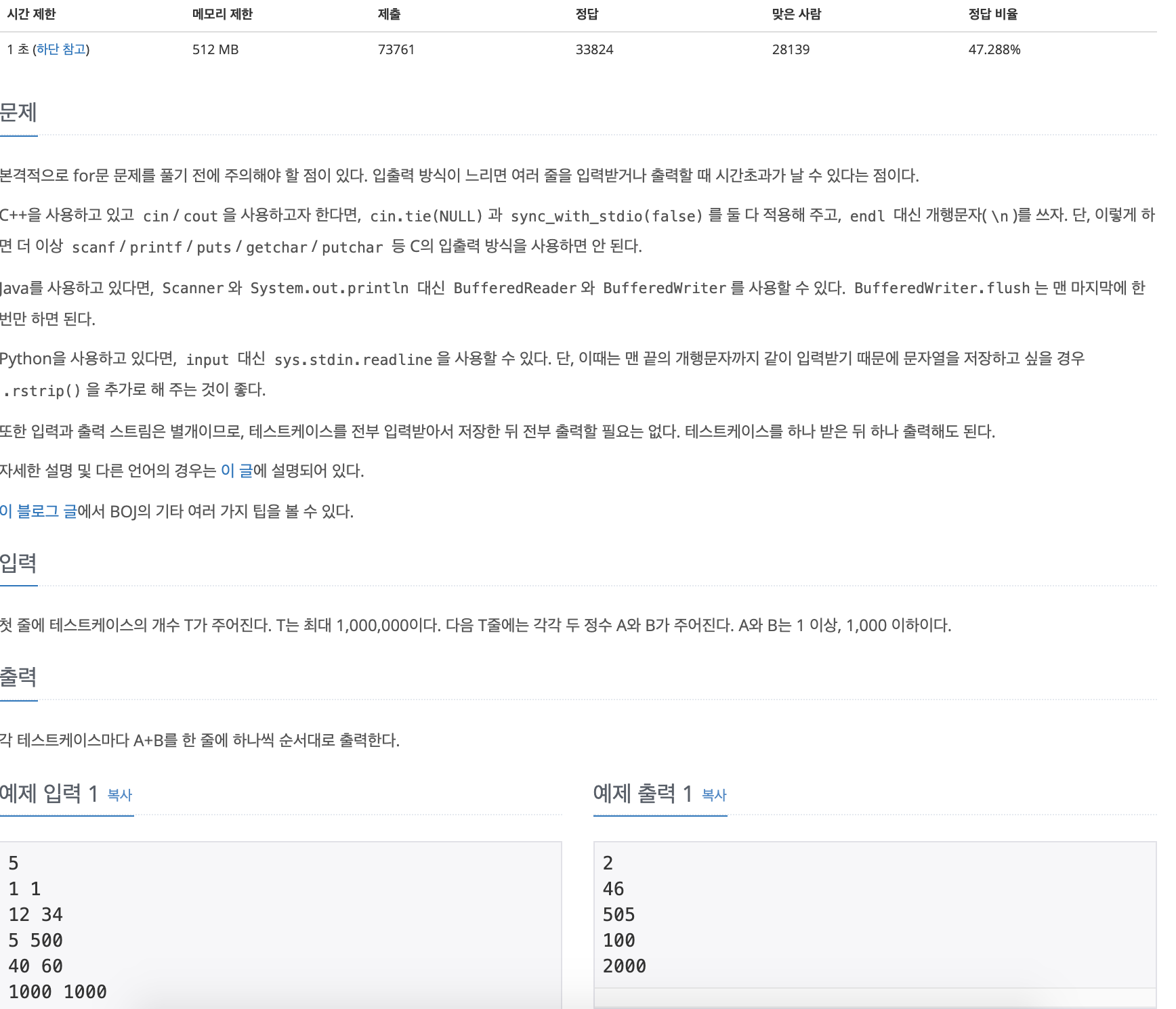 http://acmicpc.net/problem/15552