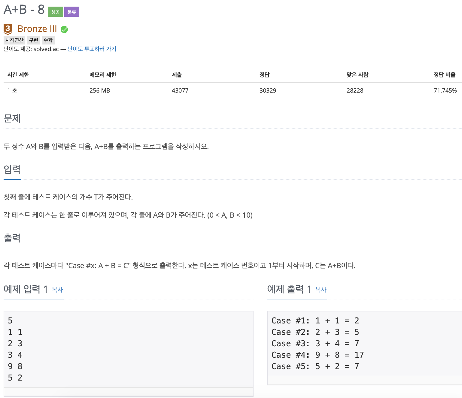 http://acmicpc.net/problem/11022