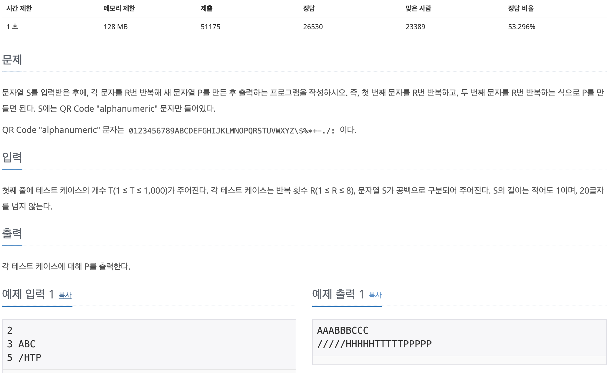 코드를 보면 숫자 n과 문자열 s가 존재하고 s의 각 인덱스에 n을 곱한 문자열을 리스트로 저장하고 이를 join함수를 통해 합쳐 출력하고 있습니다.