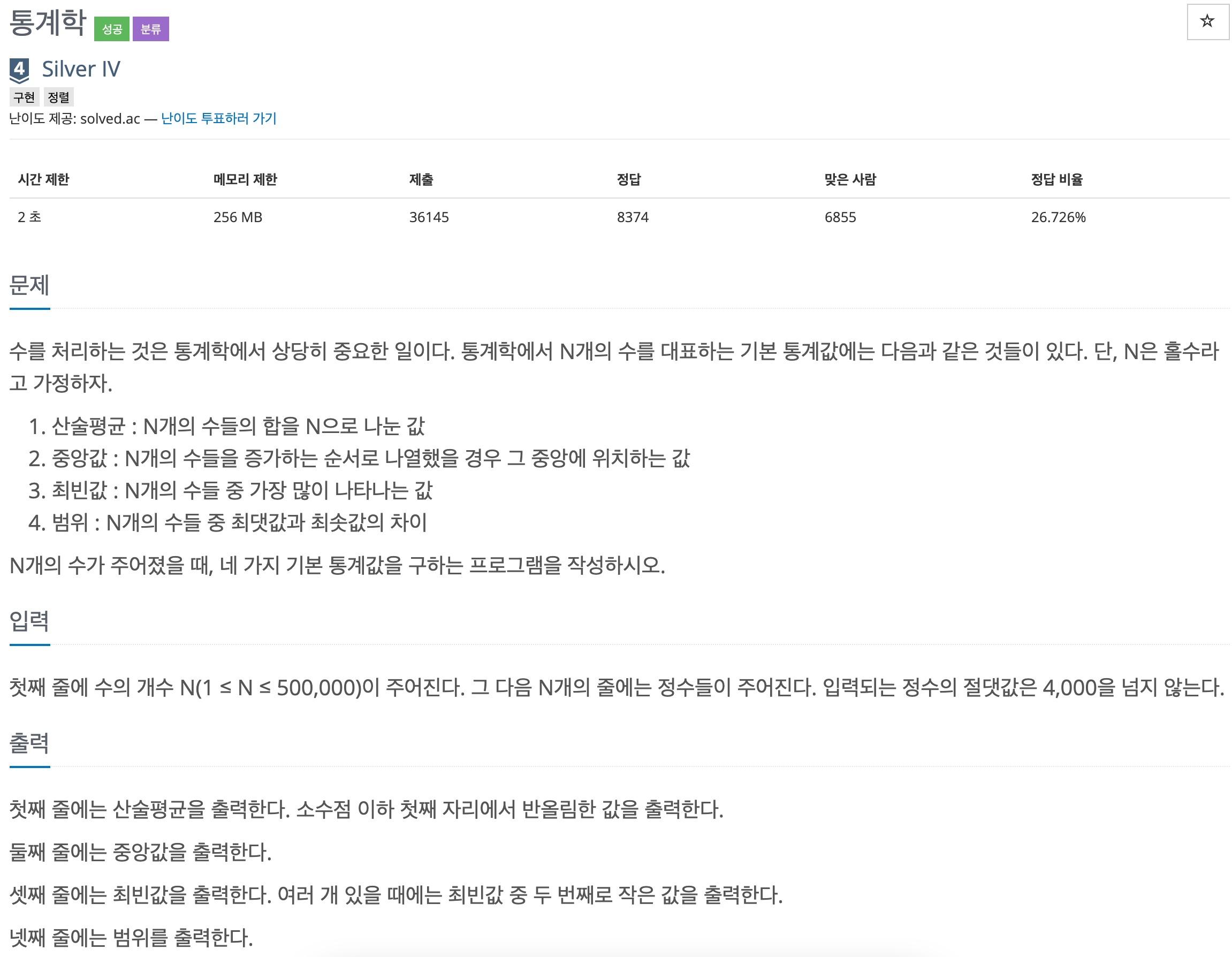 http://acmicpc.net/problem/2108
